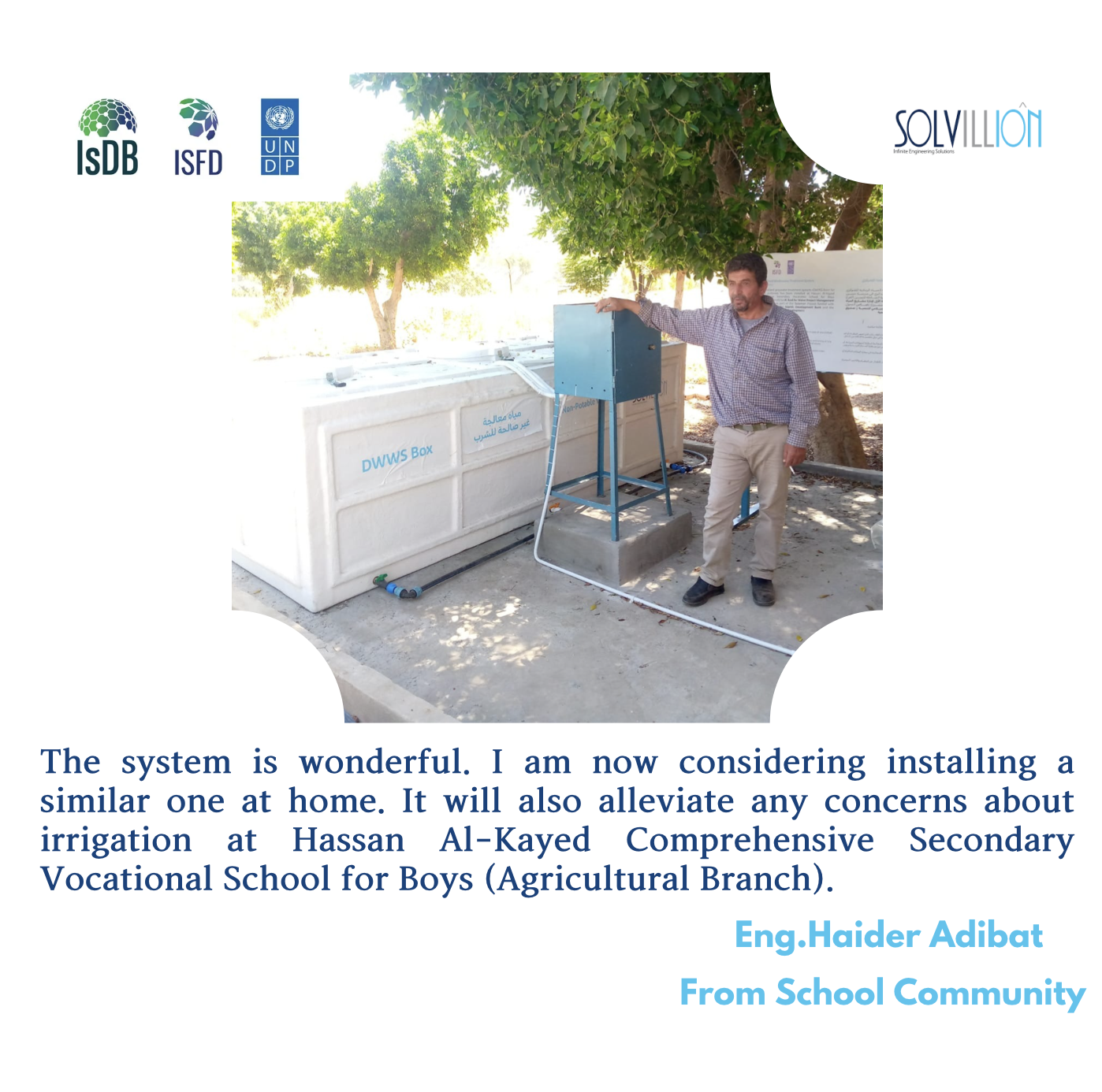 Testimonial from Eng. Haider Adibat from the School