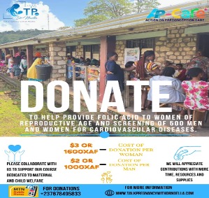 We aim to educate 500 individuals—women, men, and adolescents of reproductive age (15 to 49 years). During the campaign, we will distribute folic acid to 300 women (one tablet daily for three months before pregnancy) and screen 500 men and women (200 men and 300 women) for cardiovascular risk factors.