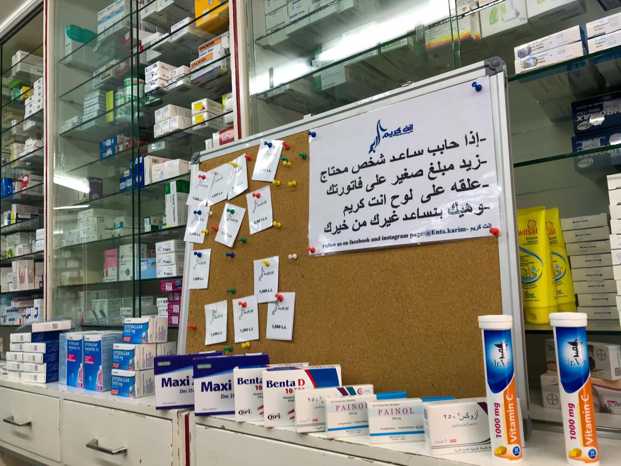 Enta Karim donation box at a pharmacy